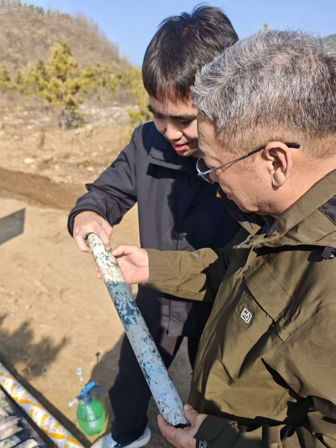 通过平台,我与师傅王瑞权结下了跨越山河的师徒缘分。从隆化大乌苏沟铁矿钻孔旁的俯身记录,到围场多金属普查区小溪边的辨析岩心,师傅的身影始终与我并肩,手把手地教我辨识矿脉、校正罗盘、解读地质构造,他以数十年的野外经验驱散了我的困惑,更让我在燕山山脉的沟壑纵横间,真切读懂了“地质人” 三个字的重量——那是扎根大地的坚守,是薪火相传的担当,更是用脚步丈量山河、用专业诠释热爱的初心。