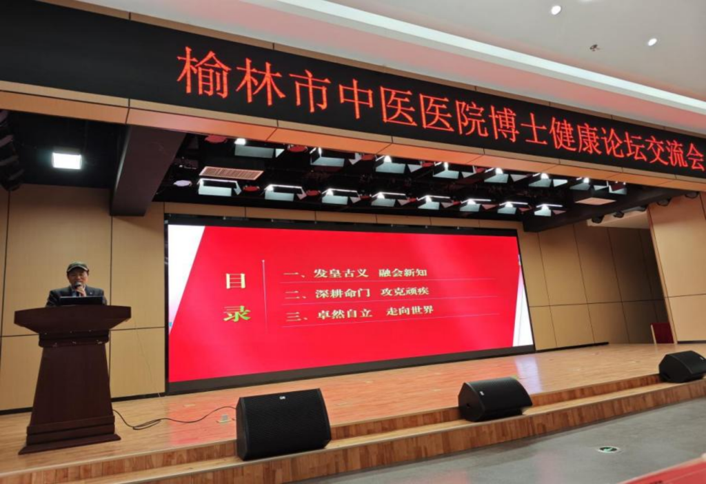 九三学社名医工作室专家、中国中医科学院中医基础理论研究所林明欣博士在陕西榆林市中医院做主旨报告。主办方供图