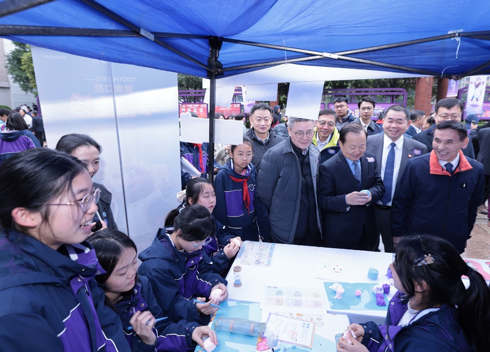 口腔医学专家与学生一起参与口腔健康科普宣教活动