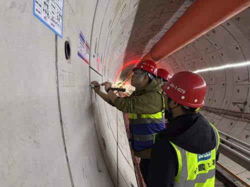 自棘洪滩车辆段出入线盾构始发以来,项目团队就充分展现了责任感与专业智慧。在全程施工中,团队始终坚持严谨细致的作风,精密调控掘进参数,精确管理出土量,并持续监控设备运行状态,确保盾构机稳定前进。面对浅埋接收这一重大技术难题,项目指挥部带领工区团队周密组织、科学论证,严格依据端头加固方案执行,并通过试验验证加固效果,为地层稳定构建可靠的安全屏障,成功攻克了施工挑战。