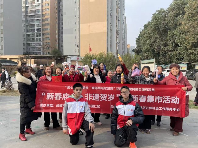为传承中华优秀非遗文化,搭建邻里欢聚平台,营造热闹祥和的新春氛围,2月5日15:00-17:00,由成都市双流区东升街道花园社区主办、成都市双流区云伴社会工作服务中心承办的“新春庙会・非遗贺岁”迎新春集市活动在花园社区成功举办,社区各年龄段居民踊跃参与,在欢声笑语中感受传统年味与非遗魅力。