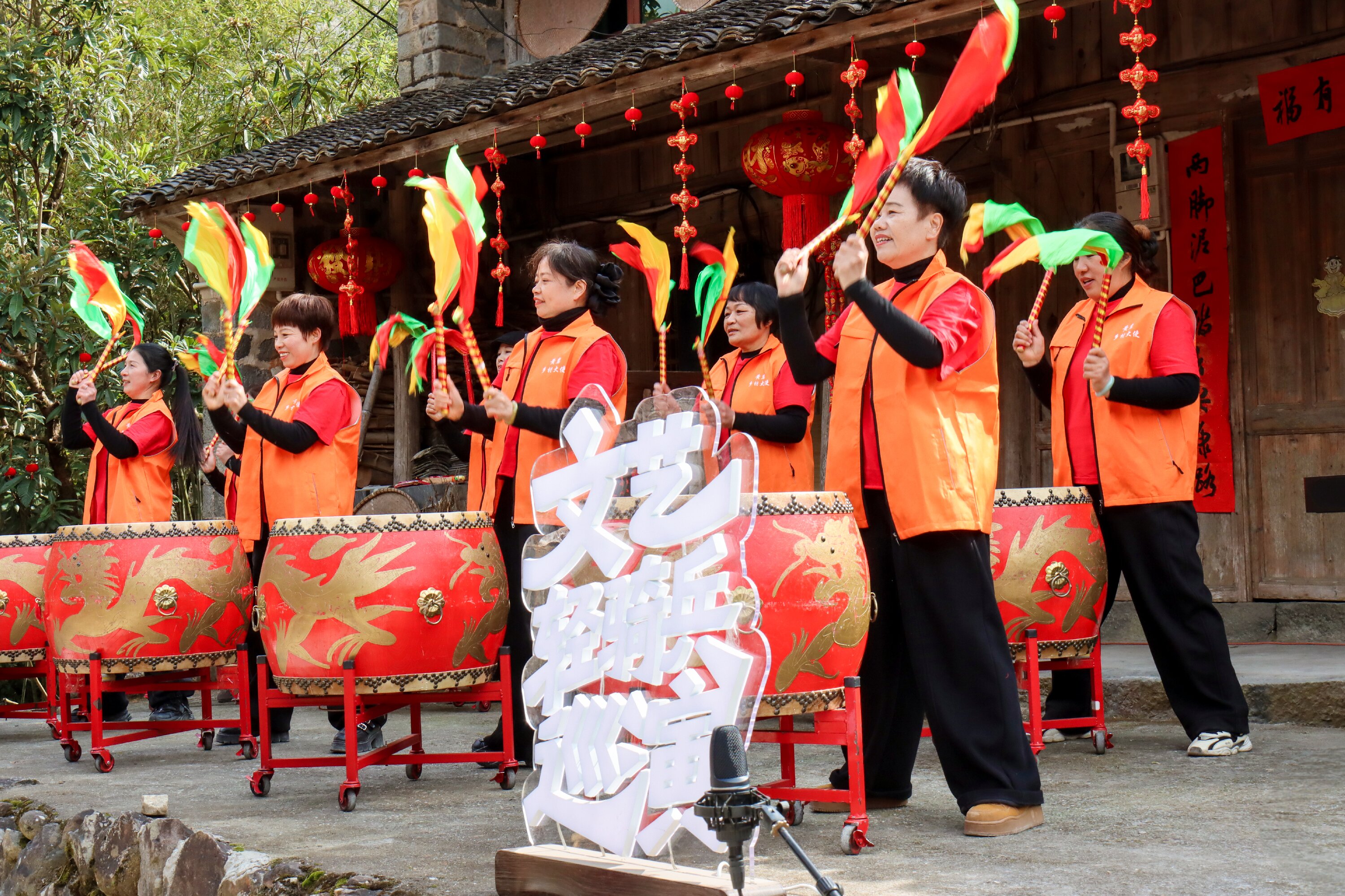 “快去看,村里来了文艺轻骑兵!”舞台就地取材,用竹木、布料搭建,虽然简陋,却充满了浓郁的乡土气息。中国鼓气势恢宏开场,二胡名家张觉平的一曲《山村小品》悠扬婉转,原杭州越剧院王派花旦孙晓阳带来的越剧选段更是让戏迷们大饱耳福。相声《戏曲新说》逗得大家捧腹大笑,曲艺《姜汤面》用方言演绎家乡味道,引发了全场的共鸣与掌声。
