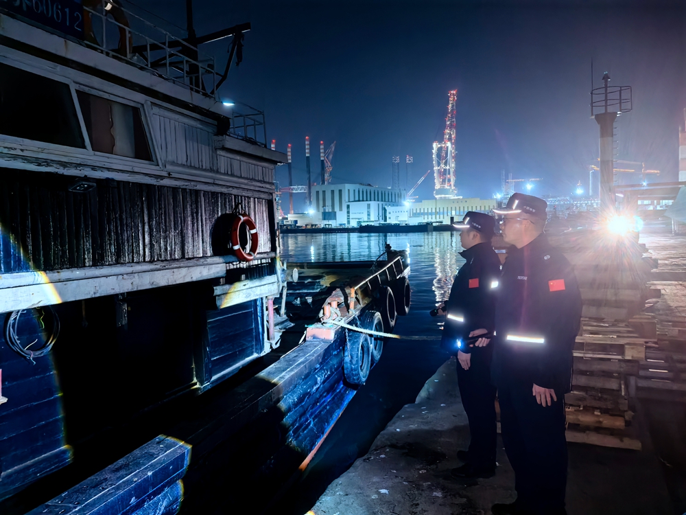 烟台海警局执法员加强春节期间夜间巡查管控