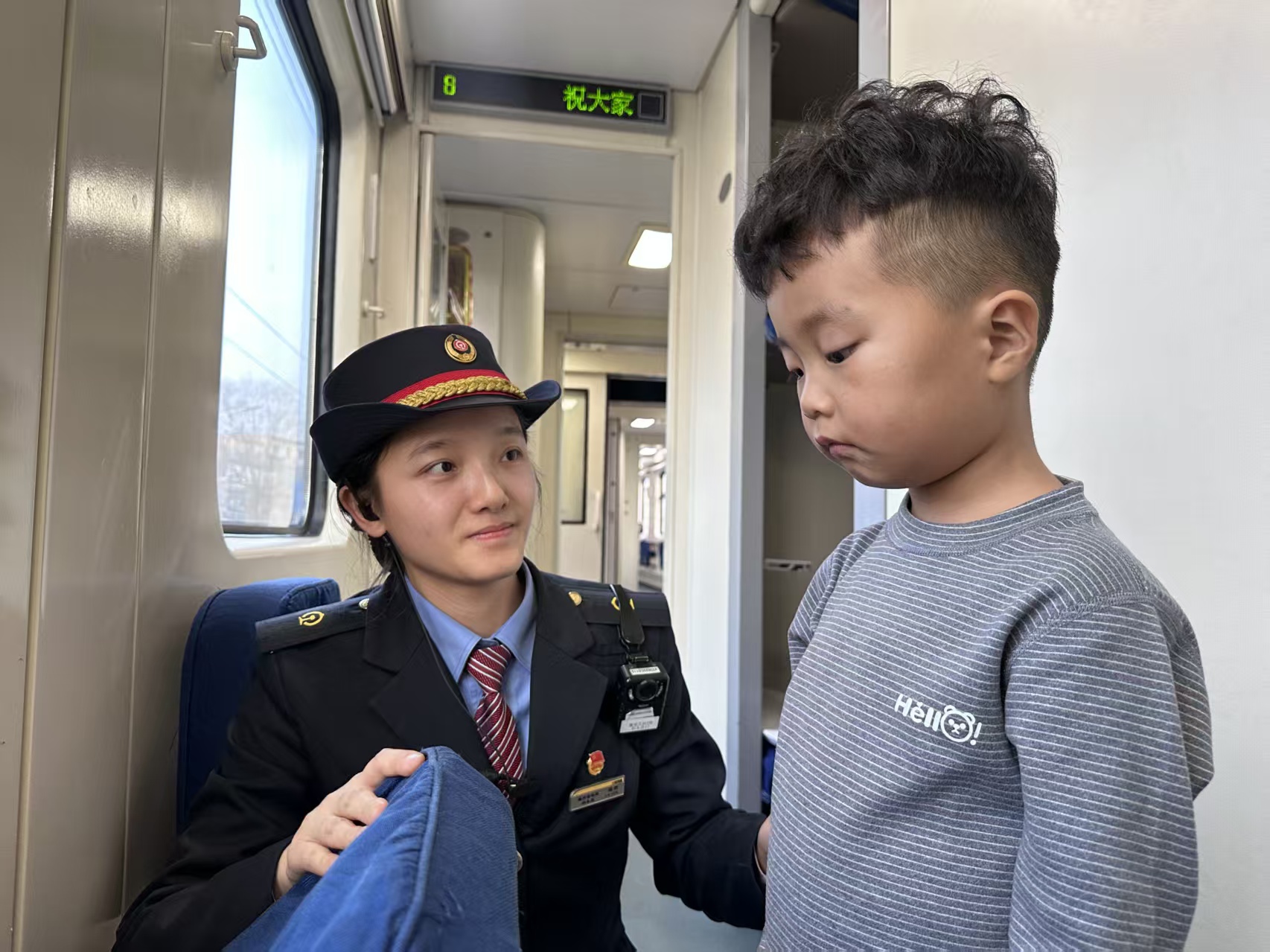 “老奶奶你好,我会提前15分钟过来提醒你下车,安心休息哈!”“大件行李请妥善放置!”2月11日,在福州客运段厦渝车队值乘的Z126/5次列车上,来自四川的“00后”双胞胎姐妹杨煚、杨然正以饱满的热情投入服务工作。这对2004年出生的孪生姐妹,自2023年4月加入福州客运段,已连续三年用青春与汗水书写春运暖心故事。