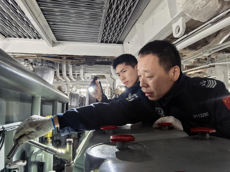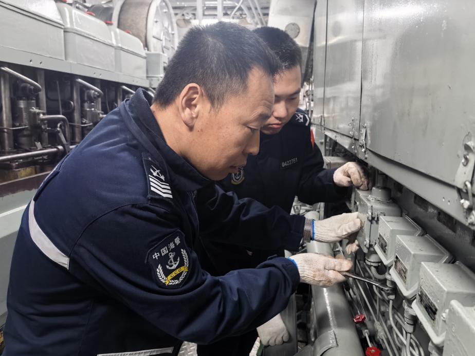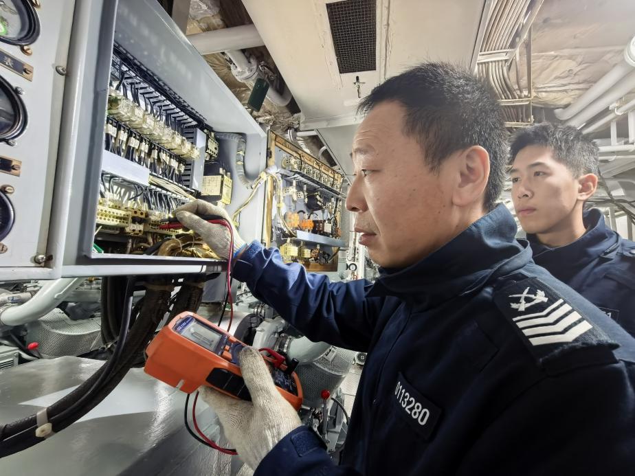 二十五年前,“老张”还是青涩的“小张”,初次踏上舰艇,对一切既感敬畏,又觉茫然。跟着老执法员检修线路,他云里雾里,分辨不清眼前盘根错节的线路,也不明白轰隆作响的机器如何推动钢铁舰体破浪前行。那时候机舱还不是张茹的“舒适区”,在老执法员的耳提面命下,年轻的“小张”开始小心翼翼学习怎么与这些设备相处。也记不清是在第几次航行中,张茹适应了高温、高湿、高噪的机舱环境,日常保养、航前检查、值班巡查,他始终是新人里最勤恳的那一个。当同期有人因畏难等原因离开机电岗位,他却默默接过更多职责,迅速掌握一项项新技能。“坦白说,那个时候被老执法员的手拍拍肩膀、表扬几句,心里也会觉得有点小骄傲,觉得自己总算‘上手’了。”