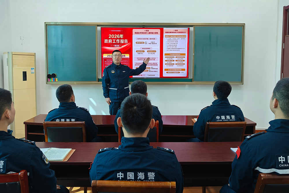 “回顾过往,展望未来。政府工作报告为我们指明了奋斗方向,更激励我们立足岗位履职尽责,为海洋强国战略贡献力量!”执法员薛砚泽斗志昂扬地说道。“我们以‘故事讲述+感悟启发’形式,结合两会精神宣贯,探时代密码,讲发展变化,谈海警实践。”“红帆理论宣讲队”队长王越介绍,他们将深入渔村、登上海岛、走进舰艇,探索“海岛故事会”“渔港茶话会”“甲板微课堂”等创新教育形式,让两会精神在浪花间传递、在岛屿间回响,扎实开展“两会精神润海疆”宣讲活动,确保直达一线、实践见效。