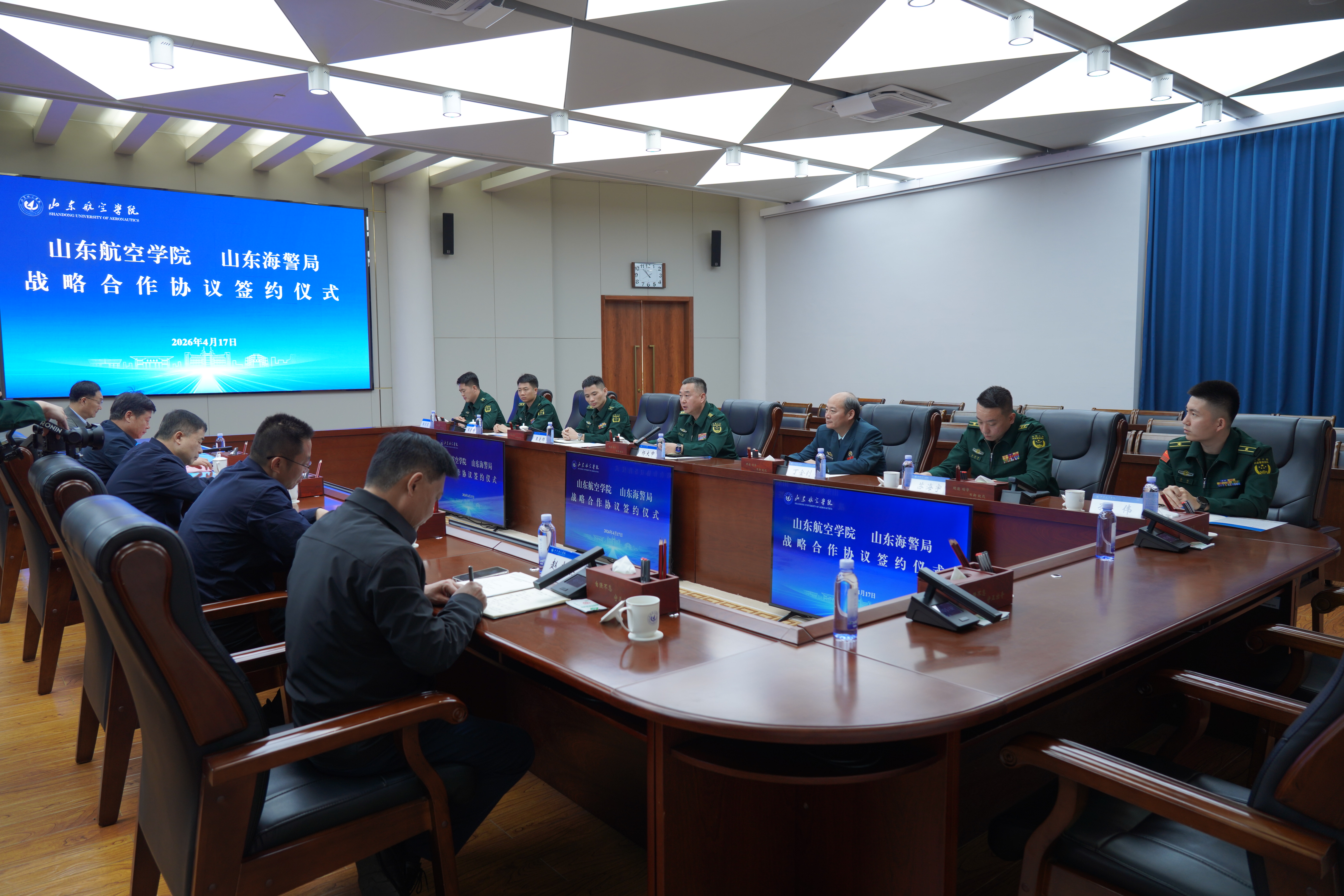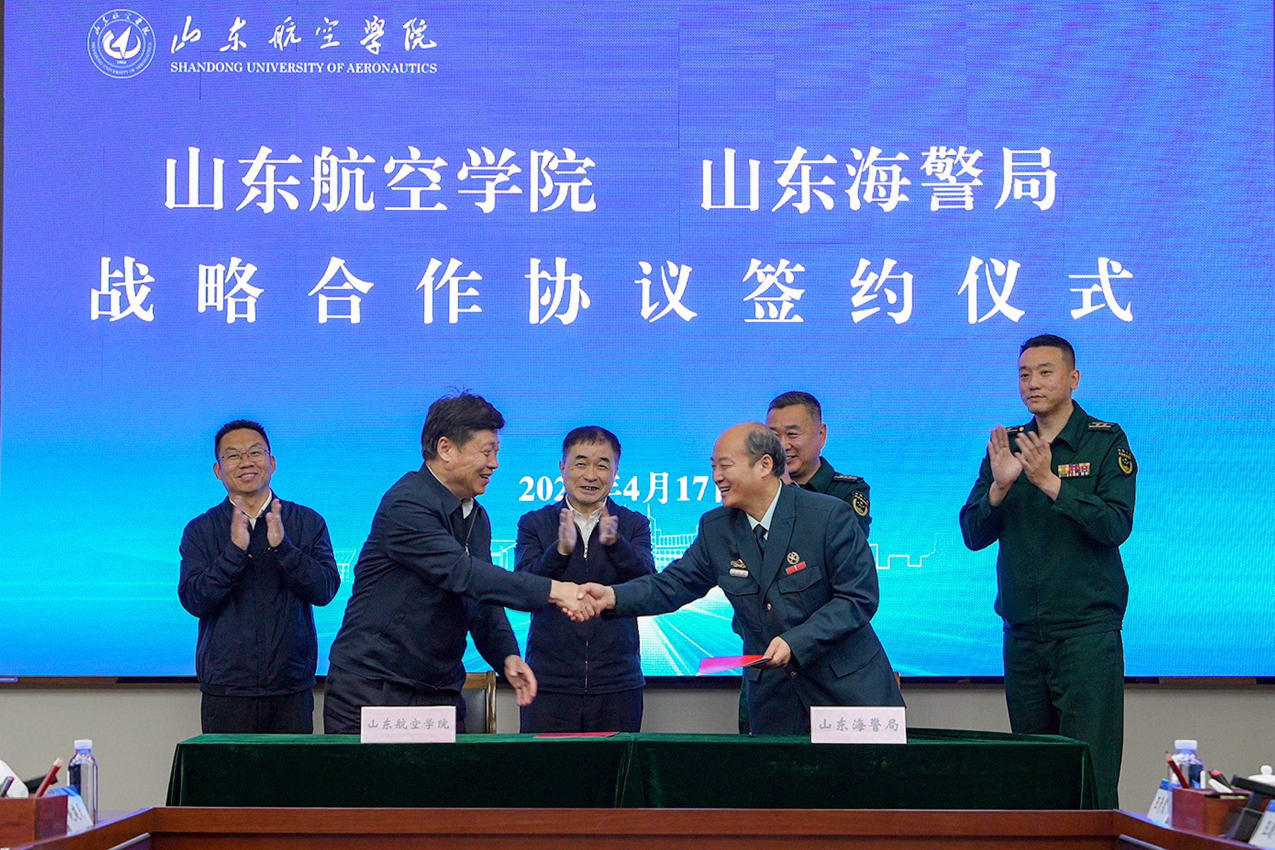 4月17日,山东海警局与山东航空学院战略合作协议签约仪式在滨州隆重举行,双方正式开启协同合作的新篇章。山东海警局局长杨大中,副局长丁金钊,山东航空学院党委书记李长海等出席仪式。