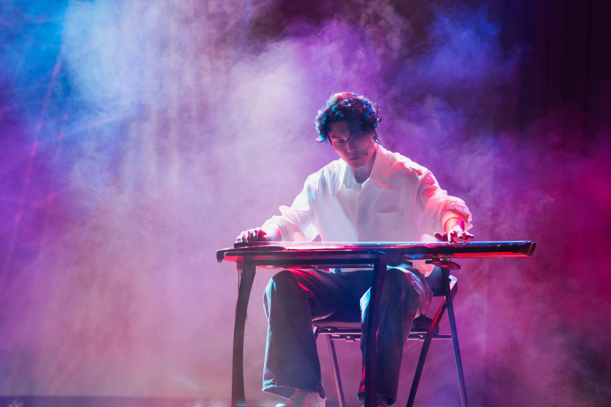 演出当晚,报告厅内座无虚席、弦歌不辍。南艺音乐剧系师生与多位特邀艺术家、非遗传承人联袂献艺,近20个唱段与舞段在当代戏剧与流行音乐语汇中融入古琴、昆曲、江南丝竹、苏州评弹、苏绣等江苏特色非遗元素,既有传统遗韵的绵延宁静,又有现代艺术的生机活力。时空交错间,伏羲制琴、师延乱商、师旷斗琴等历史传说在水墨光影中重现,昆曲经典经创新改编与现代音乐剧碰撞出独特艺术张力。高潮处,师昂独唱《心念》点破“琴声即心念”的千年哲思;江南则以一曲《古今流觞》清唱,放下执念、完成从器物修复到心灵修复的成长蜕变。千年琴音化为文化传承的青春注脚,全场掌声经久不息。