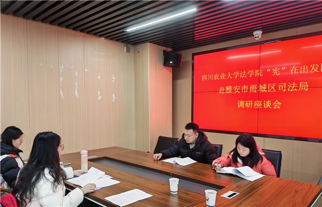带着社区的鲜活气息与疑问,实践团走进了法治建设的“中枢”。在雅安市司法局,普法和依法治理科科长杜小敏为成员们勾勒出“牵引、供给、融合”的清晰职能图谱。她谈到,普法已从“大水漫灌”转向“精准滴灌”,无论是针对青少年的“体验式”法治启蒙,还是融合地方文化打造的“茶思思”“江小卫”普法IP,目标都是让法治元素像空气一样融入日常生活。在雨城区司法局,政治部主任欧洋吉则向他们展示了扎实的“施工图”:“1+5+3”合法性审查如何延伸至社区公约、“三调联动”机制如何一年化解近4000件纠纷、1649名“法律明白人”如何活跃在网格。两位负责人不约而同地提到当前普法面临的挑战:专业力量如何加强、新业态群体如何覆盖、形式创新如何兼顾知识系统性。这些坦诚的交流,让这些川农学子跳出一场活动的局限,看到了宪法精神落地所需的系统支撑与长远规划。
