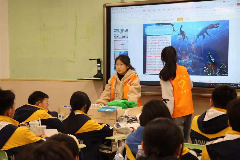 为进一步科普管道保护知识,提升学生的安全防范意识,2026年1月21日,四川农业大学管理学院橙心青管•红心护航志愿宣讲队走进了成都市东辰外国语中学,为53名初中生带来了一场别开生面的管道保护主题宣讲与实践活动。本次活动打破传统科普模式,创新引入VR眼镜技术,以沉浸式体验让学生们直观感受管道安全的重要性。