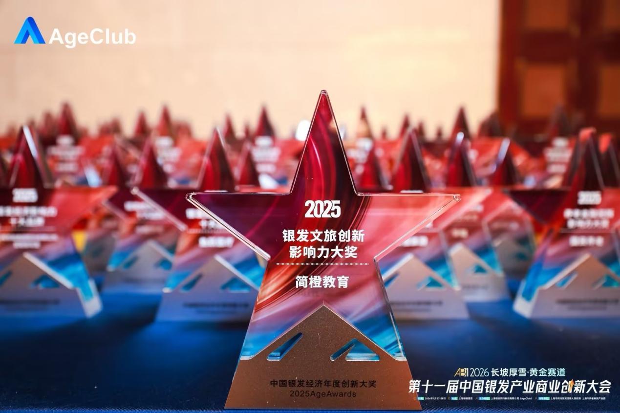 2026年1月27日,ABI2026第十一届中国银发产业商业创新大会在上海启幕。本届大会由国内领先的银发产业平台AgeClub主办,聚焦银发经济国家战略新阶段下的机遇与挑战。作为大会的重要成果,“2025 AgeAwards中国银发经济影响力年度创新大奖”正式发布,简橙教育旗下品牌“简知文旅”凭借其卓越的创新实践与行业引领力,成功斩获“银发文旅创新影响力奖”。