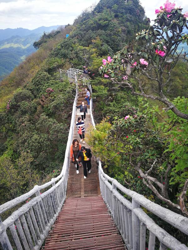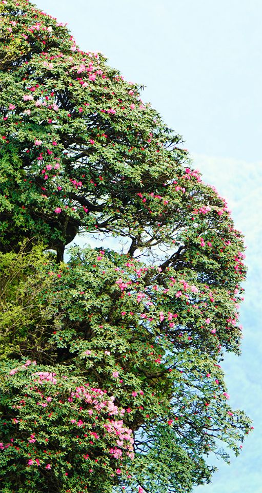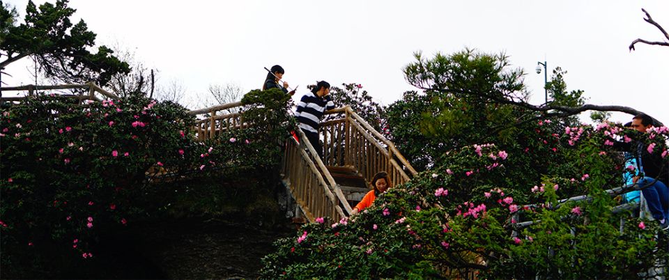 刚刚晋升为世界地质公园的光雾山,这两天换上了华丽的盛装,正敞开怀抱,喜迎八方游客。 人间五月芳菲尽,光雾杜鹃始盛开。光雾山景区的香炉山,一朵朵美丽的杜鹃花正悄然绽放。艳丽的杜鹃花绽放在奇峰秀岭之间,一丛丛,一簇簇,红如火,粉似霞。娇艳的花朵,在流云飞雾中若隐若现,宛若仙境,引的游人和小鸟流连忘返。