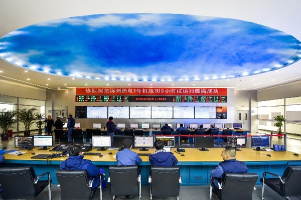 (图为涿州京源热电有限公司热电机组总控室,涿州市委宣传部授权中国日报网使用)