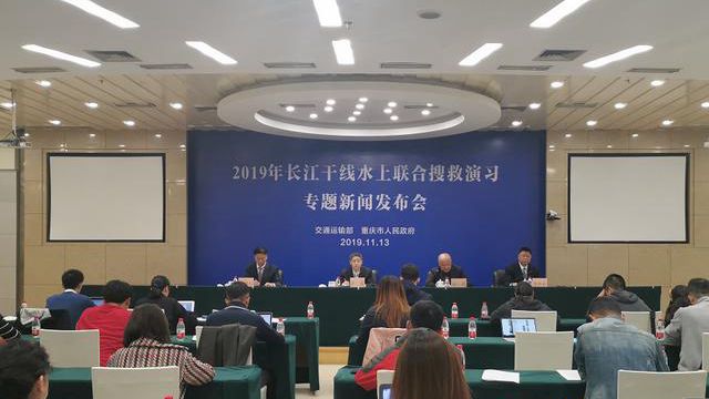 11月13日,记者从2019年长江干线水上联合搜救演习专题新闻发布会上获悉,本次演习将模拟一艘集装箱船(载集装箱60个,船员6人)下行至涪陵黄旗码头水域时,与上行的一艘滚装船(载车40台,乘客104人,船员16人)发生碰撞,导致滚装船乘客受伤,人员落水,船舶失控,货车起火,集装箱船出现破舱溢油,集装箱落水,其中两个重箱沉入江中。交通运输部和重庆市联动,组织各方水上应急救援力量合力救助,及时救起落水人员,紧急转送重伤人员就医,妥善疏散安置遇险乘客;及时扑灭滚装船大火;控制并清除水面溢油,保障水域清洁;调度专业打捞力量远程投送深潜设备;扫测定位落水集装箱,采取措施恢复航道通航;将落水集装箱打捞、拖带至安全水域,将遇险船舶拖至安全水域靠泊。
