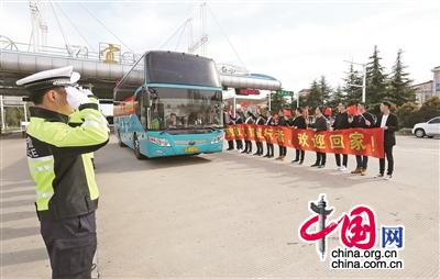下午3点10分,平安回家的车队缓缓停靠在迎接仪式现场。车厢门打开,勇士归来!队员们面带笑容,手持五星红旗和“九如城集团”队旗,精神抖擞地步出车厢门“。春暖花开,平安归来”“欢迎回家”“你们辛苦了”“致敬最美养老服务逆行者”……现场,一个个横幅、标牌用最质朴的语言向新时代最可爱的支援队员们致敬。