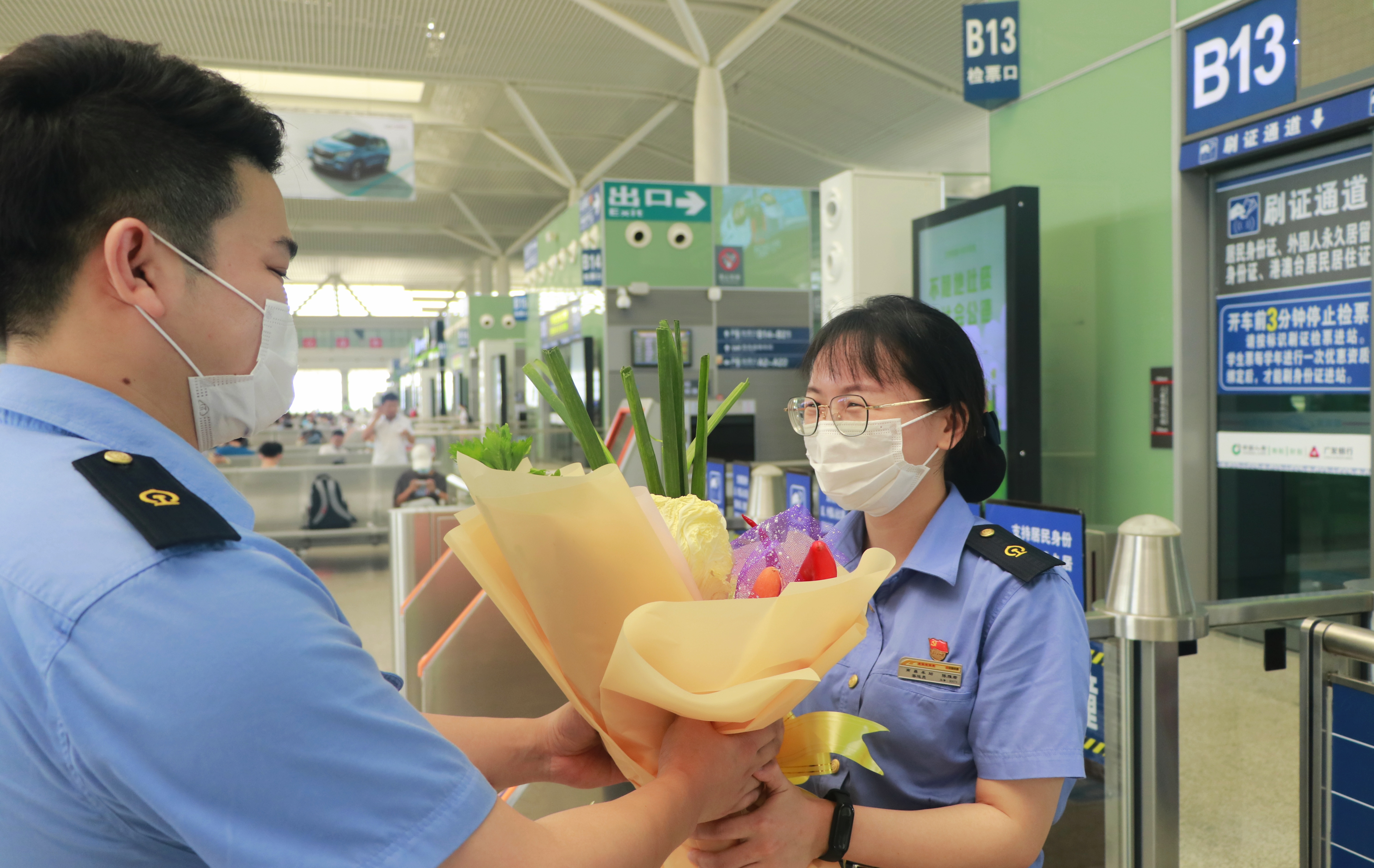 “你辛苦了一个夏天,暑运也接近尾声,借着七夕我想给你一个惊喜,这束“鲜花”是我昨天晚上利用间休时间自己插的”说着,周斌便把早已准备好的“鲜花”塞到陈雅君手中。陈雅君和周斌都是南昌西站的客运员,几年前学校毕业后便在西站相识,做事细致、处处替人着想的陈雅君慢慢地吸引了周斌的注意,机缘巧合之下,他们走到了一起。