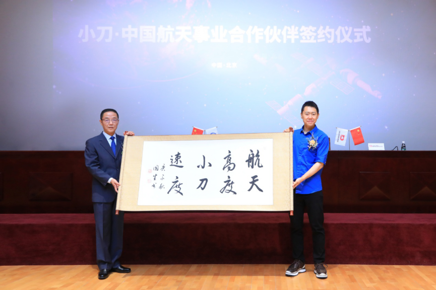 签约仪式上,小刀集团总经理魏益铎与中国航天基金会秘书长王程代表双方签署合约,中国航天基金会副理事长王东炬授予小刀集团“中国航天事业合作伙伴”荣誉牌匾。