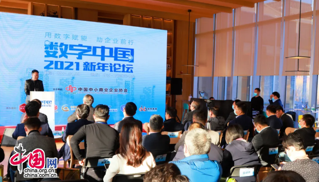 中国网直播讯 1月8日,数字中国2021新年论坛在北京万科翡翠书院举办。本次论坛由中国中小商业企业协会主办,华为公司和中金珠宝支持,华融汇、易路软件、明悦数据协办。论坛分别由中国中小商业企业协会驻会副会长任兴磊和央企数字化转型战略顾问阮开利主持,中国中小商业企业协会监事长左凌云为论坛致辞,陈建煌、牛涛、赵鹏、王治伟、张伟方、李志军等在现场出席会议。
