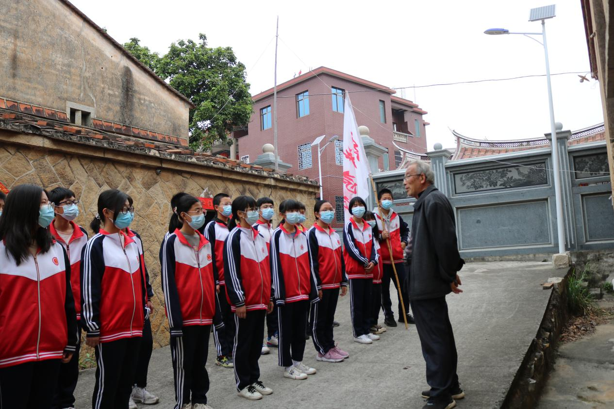 一大早,在泉港区界山镇鹅头村沟口地下联络站旧址,学生们列队整齐,站立在这座写满了沧桑的老屋前,听爷爷们讲述革命往事。鸠林中学学生沈子炫表示,听了刚才老爷爷讲的一番话,明白了他们那个年代的艰辛、他们的不容易,而作为一个学生,应该要好好学习,做好自己。