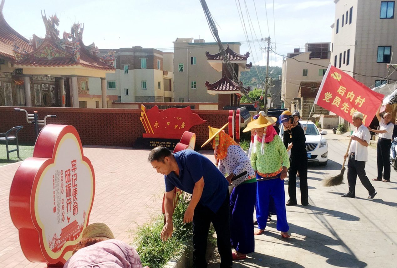 小岞后内村党员志愿先锋队开展爱国卫生运动(惠安县委文明办供图)