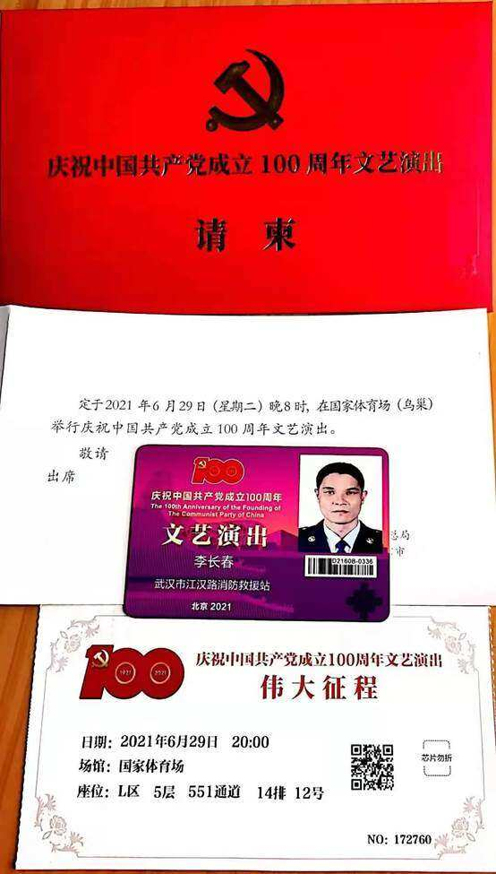 全国优秀共产党员、湖北省武汉市消防救援支队特勤大队一站站长助理陈建,湖北省优秀共产党员、湖北省武汉市江汉区江汉路消防救援站站长助理李长春,作为7名全国消防救援指战员代表之一,参加了中国共产党成立100周年庆祝大会。