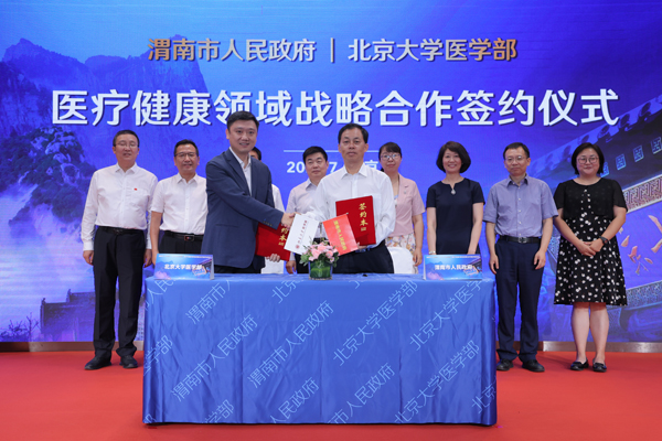 7月6日,渭南市人民政府与北京大学医学部在北京签署医疗健康领域战略合作协议。2020年7月以来,渭南市卫健委启动并全力推进渭南市人民政府与北京大学医学部深度合作,经一年来多次衔接沟通协商,已就市校合作事宜达成一致,双方签订渭南市人民政府与北京大学医学部医疗健康领域战略合作协议;签订共建思想政治实践课教育基地合作协议;签订渭南市医疗卫生人才培养项目合作协议。