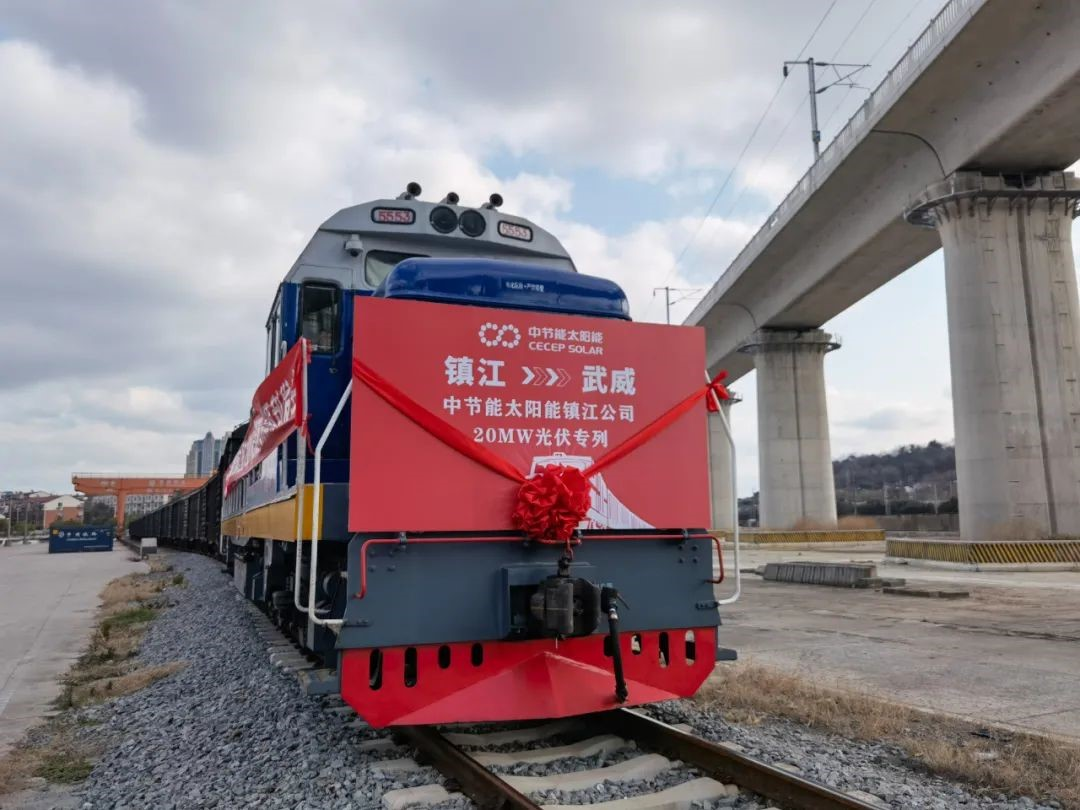 12月25日,中节能太阳能科技(镇江)有限公司(以下简称中节能太阳能镇江公司)光伏专列从江苏镇江首发,搭载着40车皮、20兆瓦550W高效组件,开往甘肃省武威市,预计3天左右到达。据了解,此次专列是中节能太阳能镇江公司在南京铁路货运中心镇江经营部的全力支持下组织发运。