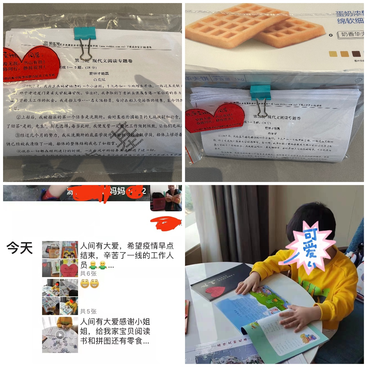 “人间有大爱,感谢小姐姐给我家宝贝送来阅读书本、拼图和零食......”这是源昌凯宾海景酒店隔离点留观者魏妈妈在微信朋友圈里发的一条动态信息,配图里儿子手捧图书笑得特别开心......日前,该隔离点不同年龄段的孩子们收到了一份份爱心大礼——中高考加油包(学习资料)、少年暖心包、儿童快乐包......