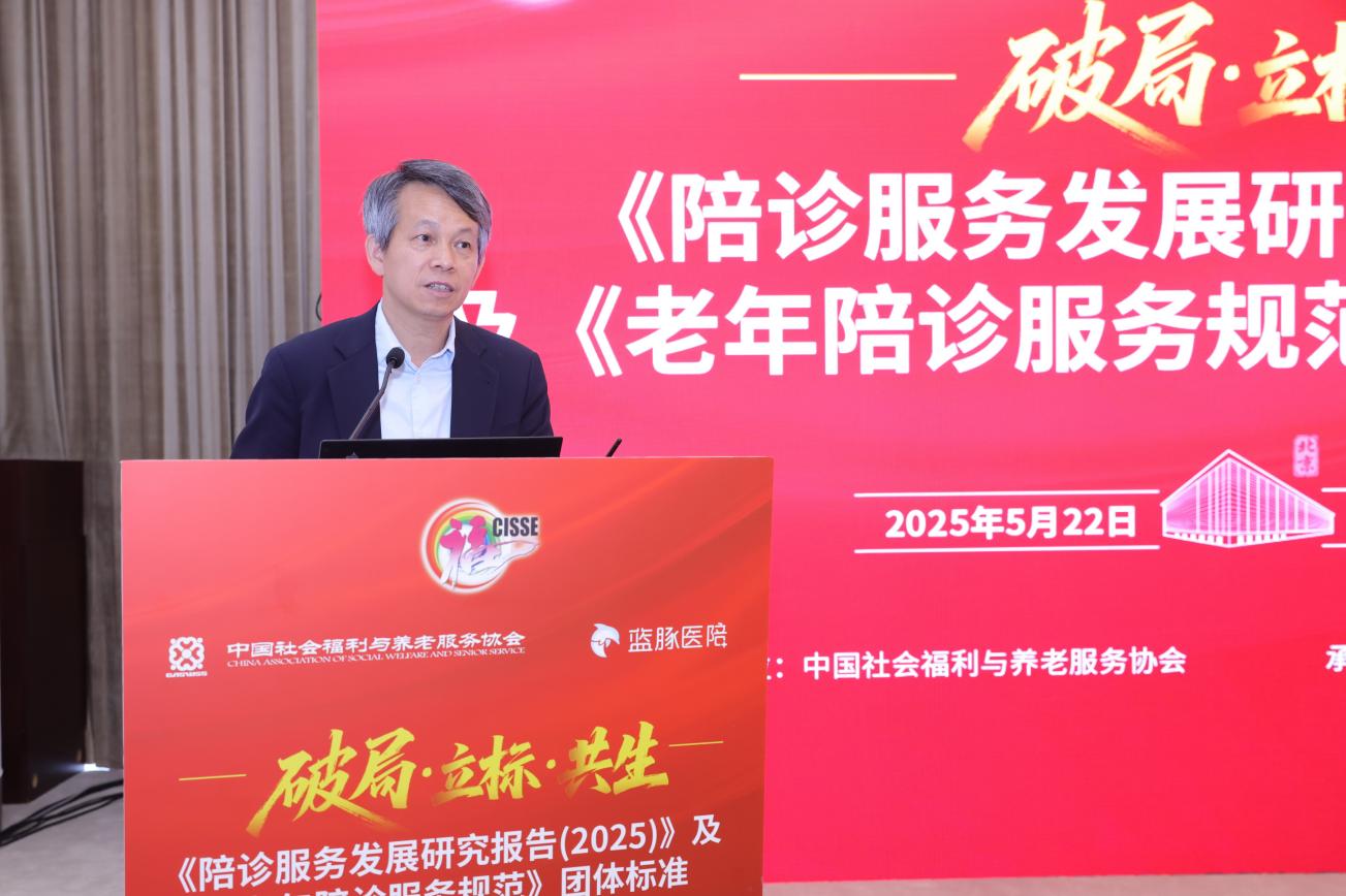2025年5月22日,第十一届中国国际养老服务业博览会举办期间,中国社会福利与养老服务协会(以下简称“中福协”)携手圈地科技(北京)有限公司(蓝豚医陪),在北京国家会议中心成功举办一场名为“破局·立标·共生”的发布会。会上,双方联合发布了《陪诊服务发展研究报告(2025)》及《老年陪诊服务规范》团体标准两项重要课题成果,积极助推我国陪诊服务加速迈入规范化、标准化发展新阶段。