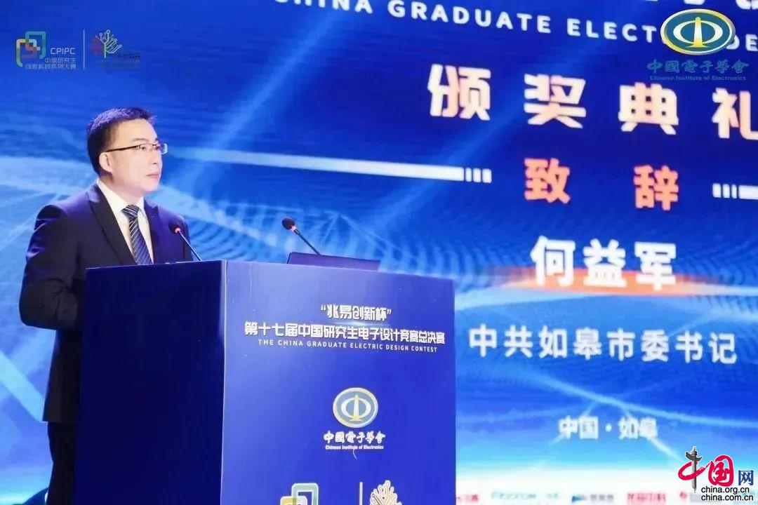 13日上午,第十七届研电赛颁奖典礼隆重举行,中国电子学会副理事长、中国科学院院士房建成出席颁奖典礼并做精彩报告,中国电子学会总部党委书记张宏图、江苏省科学技术协会党组成员、副主席方胜昔、中共如皋市委书记何益军、中共如皋市委副书记、市长王鸣昊等领导嘉宾出席活动,工业和信息化部电子信息司副司长史惠康线上致辞。