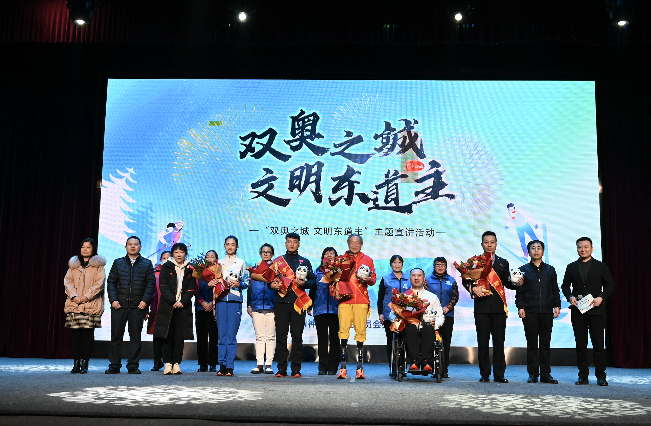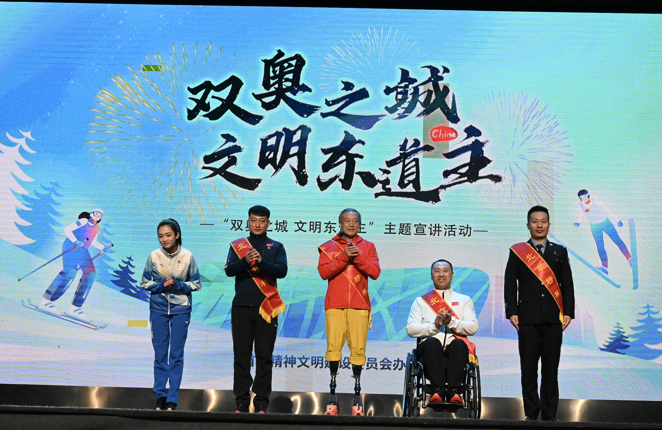 活动现场,5位宣讲嘉宾从不同角度分享了他们的冬奥文明故事,用真挚朴实的双奥情怀,传递了北京冬奥会志愿者、开闭幕式表演者身上所蕴含的“胸怀大局、自信开放、迎难而上、追求卓越、共创未来”的北京冬奥精神。宣讲嘉宾有“时代楷模、2018年度北京榜样、北京2022年冬残奥会开幕式表演者”夏伯渝,“2020年度北京榜样、北京2022年冬残奥会开幕式轮椅舞者”李辉,“北京2022年冬奥会优秀志愿者代表、北京外国语大学学生”林芷馨,“2022年度北京榜样、北京2022年冬奥会交通安保民警”敖翔,“2022年北京榜样人物、北京2022年冬奥会国家高山滑雪救援队副队长”黄磊。他们与北京2022年冬奥会结缘的故事,让现场观众深受感动和鼓舞,一次次热烈的掌声将宣讲氛围推向高潮。