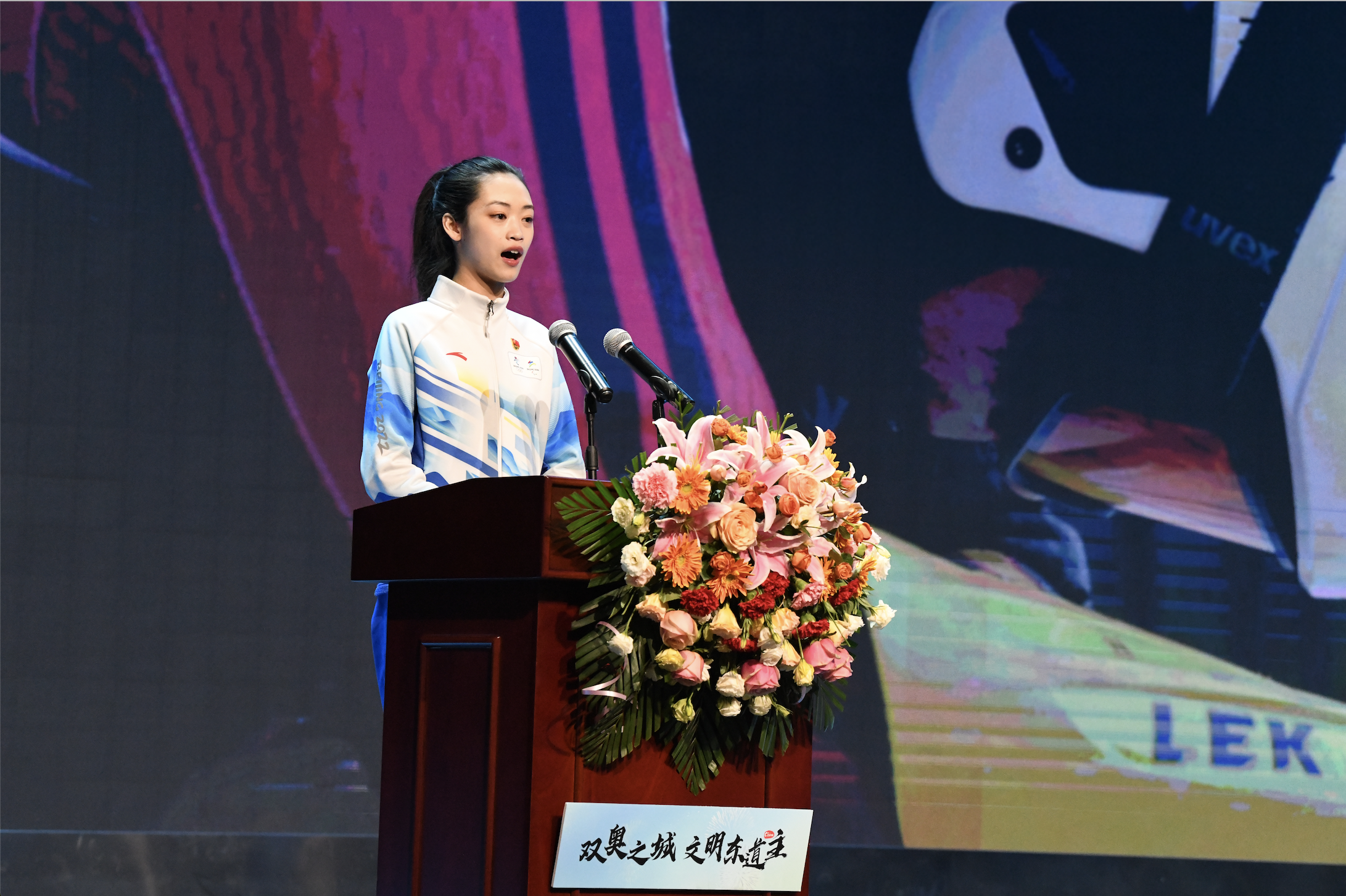 北京2022年冬奥会优秀志愿者代表林芷馨是北京外国语大学俄语学院大四的学生,在冬奥会期间,为了应对外媒采访时提出的问题,作为一名语言服务志愿者熟练掌握主要运动员的信息,甚至标志性动作,语言达到赛会解说的俄语和英语水平。北京冬奥会前夕,她放弃了中俄政府奖学金公派去俄罗斯莫斯科留学的机会,义无反顾的参与北京冬奥会语言志愿服务中,坚守着对祖国的承诺!作为未来的外交官,会继续向世界讲好中国故事,传播中国力量!