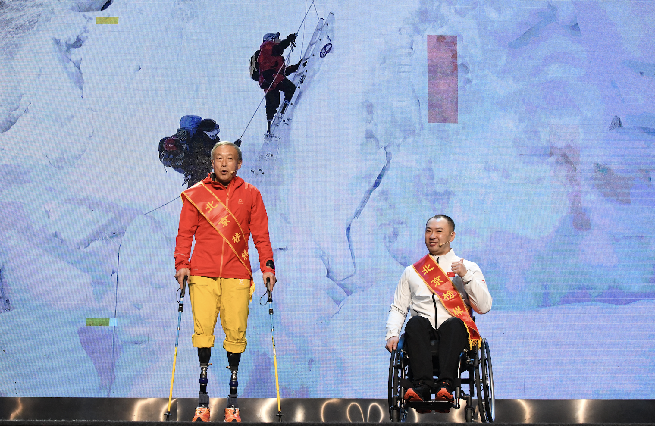 北京2022年冬残奥会开幕式轮椅舞者李辉、无腿登珠峰勇士夏伯渝,站在了冬残奥会的舞台上进行表演。为了能用最好的精气神参加这场盛会,李辉喝着浓茶保持精神应对每天到凌晨的刻苦排练,吃着消炎药、穿上了纸尿裤。夏伯渝跟随音乐踩点儿表演上场,为了这一分钟的成功,足足练了两个月,吃饭、走路、甚至睡梦中都数着节拍。他们代表的是中国8500万残障人士,让世界看到中国残障人士和健全人一样被尊重和具有迎难而上的勇气,任何困难都打不倒中国人!