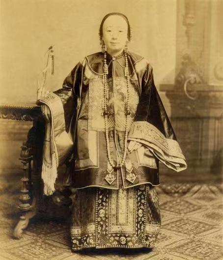 诰命夫人坐像,1880s,蛋白照片,25×16cm ,诰命夫人的肖像。