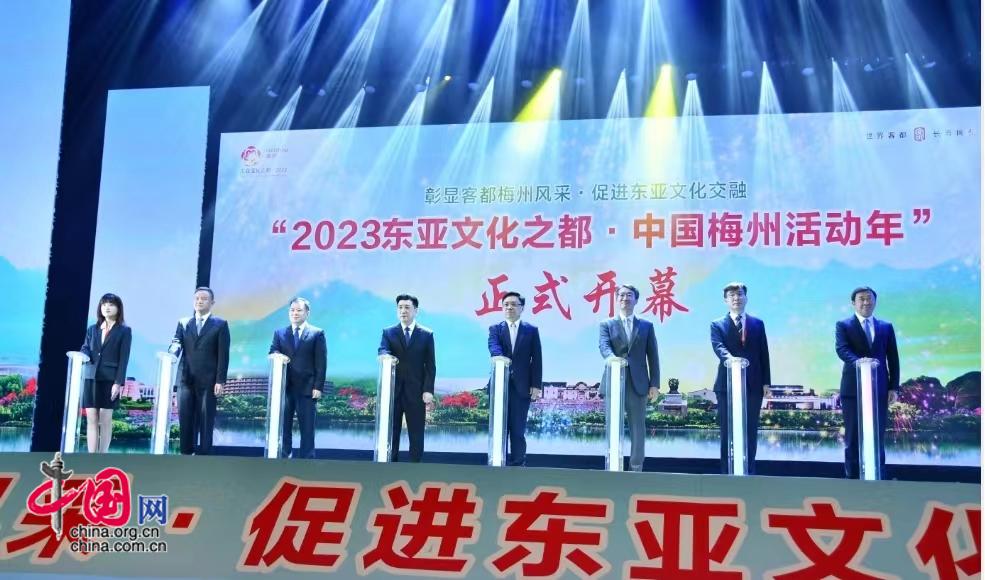 (中国网4月13日广东梅州消息 江南)2023年4月13日晚7点30分,由梅州市人民政府、广东省文化和旅游厅主办,梅州市文化广电旅游局、梅江区人民政府、梅县区人民政府承办的“2023东亚文化之都”中国梅州活动年,在梅州市亮胜艺术中心礼堂,隆重拉开帷幕。