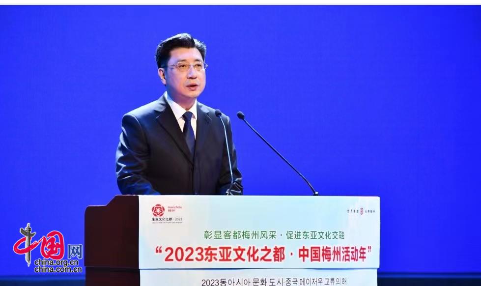 王晖在致辞中代表梅州市委、市政府向出席活动的领导嘉宾表示欢迎,向长期以来关心支持梅州发展的各界朋友表示感谢。他表示,梅州素有世界客都、文化之乡等美誉,是一座底蕴深厚、文脉绵长的中国历史文化名城,是中原文化和岭南文化的重要交汇地,是全球客家人的精神家园。获授“东亚文化之都”,是客家的荣光、梅州的骄傲。