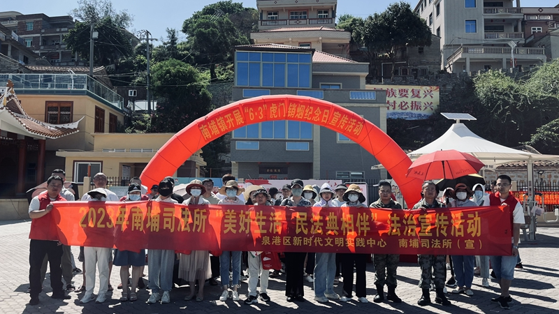 6月1日上午,泉港区司法局南埔司法所联合镇信访联席办、镇退役军人服务站和南埔派出所等多个部门走进海岛,在惠屿村开展“普法进海岛‘典’亮美好生活”主题活动。