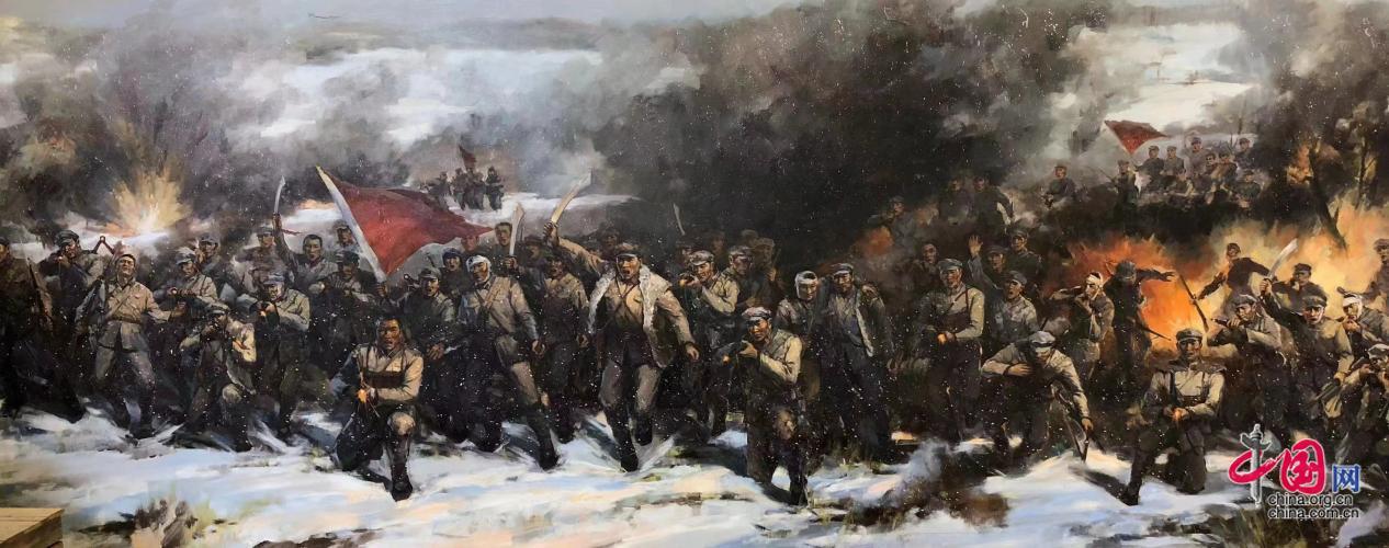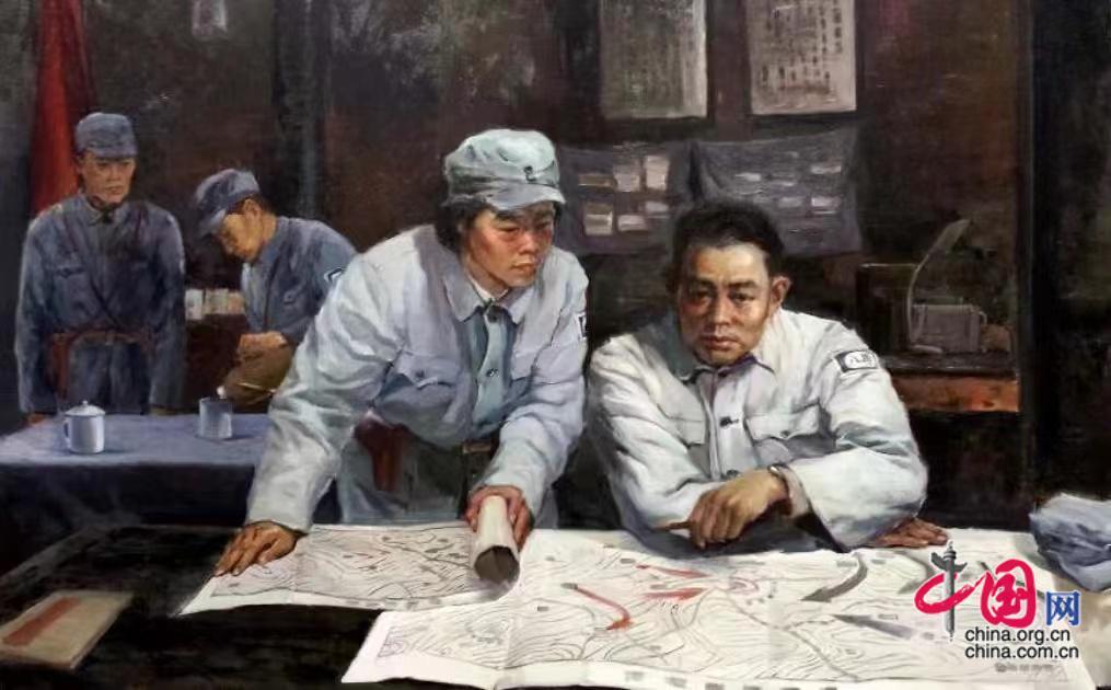 2012年,不断挑战和超越自己的潘鞍应中国油画院院长、儿时画友杨飞云之邀,在中国油画院深入研究新时代的中国油画创作。2014年开始,他和时任军博展陈部部长、战友李跃进共同创作了大量红色主题创作,并多次入选全军、全国美展:《毛主席会见澳大利亚总理惠特拉姆》、《东北抗日联军纪念馆》、《河南独树镇战役》、《湖北八一起义纪念馆》、《新疆军区》、《周恩来纪念馆》、《安源工人运动纪念馆》等等......这一系列具有重大历史意义和现实价值的艺术杰作,成为“艺术鬼才”潘鞍的又一个创作高峰,其中,《毛主席会见澳大利亚总理惠特拉姆》被中国驻澳大利亚大使馆收藏,成为两国友谊的珍贵见证。