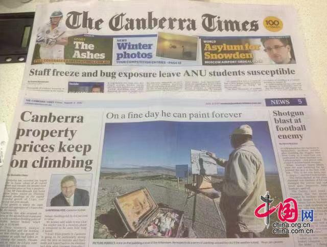 三十年前初来澳洲时为了生存潘鞍学习建筑,并成为澳洲第一个华人建筑商,也为自己的艺术创作积累了丰厚的经济基础。三十年来,潘鞍一直坚持实践自己的艺术创作,而受地理、自然环境的影响,比如固有色和原色、色彩斑斓的树木等等,都激发了潘鞍的创作,为作品增添了许多灵气。始终不变的,则是潘鞍作品中刻骨铭心的对中国文化和民族精神的原初印记:民族之思、乡土之情、文人之气、抱朴之素。而潘鞍的艺术大名也在长年的坚持中逐渐享誉整个澳洲乃至西方艺术界。30年间,旅居海外的潘鞍每个年度都有自己的艺术个展,并成为澳洲艺术界的年度盛事,被澳大利亚报纸头版争相报道,成为轰动澳洲和西方世界的“中国艺术鬼才”。