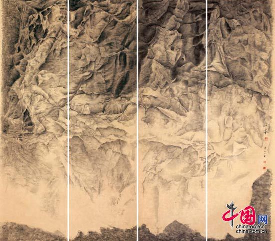 中国网讯 苏富比纽约S2画廊日前举办一场名为《道殊-同寻于墨》的画展,再度将中国当代水墨作为展览主题。蔡小松的水墨新作《沉香山》、《瀑界》四联作等15位中国当代水墨画家的杰作出现在纽约苏富比总部大楼。