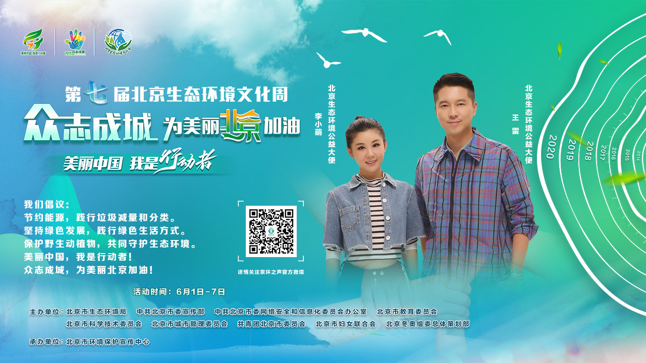 环境文化周期间,新一届北京生态环境公益大使、青年演员王雷、李小萌夫妇携《让中国更美丽》公益宣传歌曲MV和抖音环保手势舞亮相,以耳目一新的形式发出环保倡议。