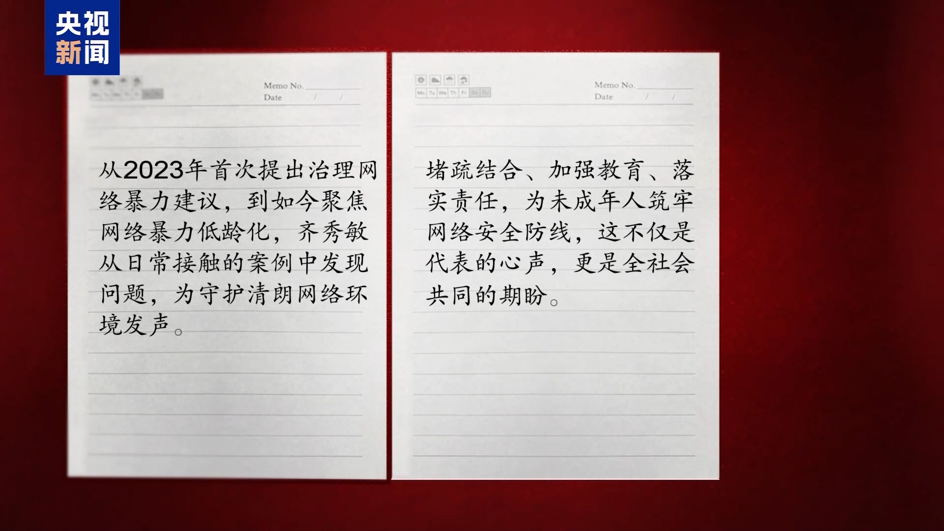从2023年首次提出治理网络暴力建议,到如今聚焦网络暴力低龄化,齐秀敏从日常接触的案例中发现问题,为守护清朗网络环境发声。堵疏结合、加强教育、落实责任,为未成年人筑牢网络安全防线,这不仅是代表的心声,更是全社会共同的期盼。