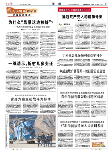 理想信念不是草率的,而是基于对党的理论主张的深刻理解与由衷认同;不是口头上的,而是经过锻打淬炼真正成为灵魂深处的精神支柱;不是功利的,而是生发于鲜明的家国大义和强烈的使命担当。新时代蕴含新气象,新征程呼唤新作为。挺直精神脊梁,就要坚持用真理指引理想,用真理坚定信仰,坚持用习近平新时代中国特色社会主义思想武装头脑、指导实践、推动工作,自觉按照新时代党的建设总要求改造和提高自己,积极投身强军兴军的时代伟业,用理想之光照亮奋斗之路,用信仰之力开创美好未来。