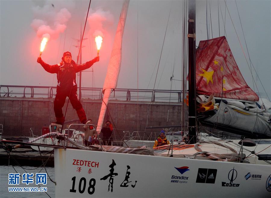 今年51岁的中国航海家郭川,在其10多年的航海生涯中,凭借顽强的意志和不畏艰险的精神创造了诸多第一,向世界证明了:中国人也能在世界航海界占有一席之地。 ——第一位完成单人不间断环球航海的中国人郭川于2012年11月18日从青岛起航,途经合恩角、穿越大西洋,最终进入南印度洋,沿途不停靠、无后援、无供给,经过137天20小时2分钟28秒、超过21600海里的艰苦航行,抵达终点青岛,从而成为首位完成单人不间断环球航海壮举的中国人。 图为2013年4月5日,郭川在抵达青岛完成环球航行后点燃燃烧棒庆祝。新华社发