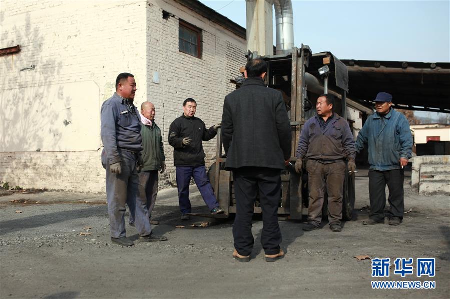 11月29日,留守值班的矿工在商量关井后的生活打算。山东枣庄为化解煤炭行业过剩产能,一批产量低、人员多、效益差的煤矿在今年陆续关停,有300多年开采历史的陶庄煤矿也在其中,工人的分流工作目前正在平稳进行。11月29日,记者来到枣庄市,探访关停一个半月的陶庄煤矿。 55岁的陶庄镇大陶庄村村民王子家是陶庄矿转运工区区长,他已经在陶庄煤矿工作了38年。10月15日陶庄矿全部7口矿井封闭后,他和其他十几名矿工成为最后的留守职工,负责将原来井下的机械、电缆等设备整理回收。陶庄煤矿养活了王子家一家三代人,他对陶庄矿很有感情。虽然很不舍,但他也觉得“资源型矿藏总有采完的一天”,设备老化的矿井停产、转型从长远来看是件好事。新华社记者王阳 摄