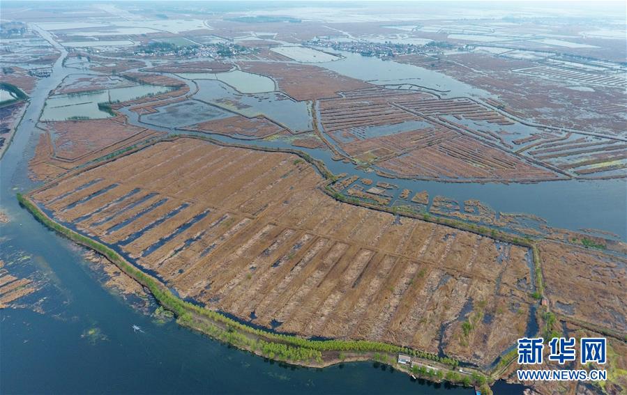 这是4月9日拍摄的白洋淀内的芦苇荡。