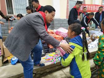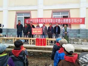 中国网6月27日讯 经康定市市委常委、副市长、援藏队领队杨德伟动员都江堰市爱心企业家及爱心人士积极到康定市献爱心。近日,都江堰市远景书局商贸有限公司在康定市塔公镇各日玛小学举行捐赠仪式,为该校学生送去了图书、书包、衣服、篮球等爱心物资共计2万元,并与学生们交流学习生活情况。