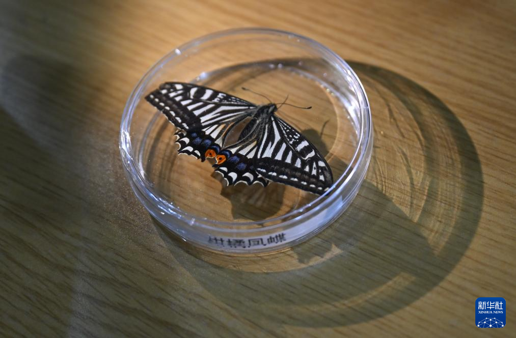2月2日,在重庆大学深空探测联合研究中心,现场展示的柑橘凤蝶标本。