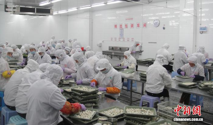 图为海源水产精选包装车间,工人们熟练地分拣、加工海鲜。福建东山海源水产有限公司 供图