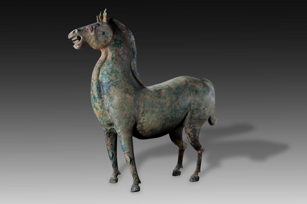 襄阳博物馆内展出的青铜马。新华社发